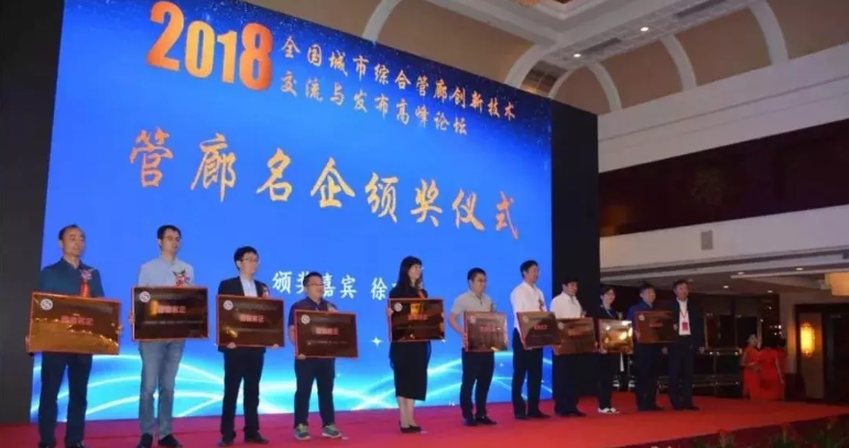 2018年9月20日,由中國市政工程協(xié)會(huì )主辦的“2018全國城市綜合管廊創(chuàng )新技術(shù)交流與發(fā)布高峰論壇暨管廊工匠、管廊名企表彰大會(huì )”在遼寧沈陽(yáng)召開(kāi),參會(huì )代表達到600余人。會(huì )上除分享管廊建設創(chuàng )新技術(shù)、行業(yè)經(jīng)驗之外,還表彰了一批對綜合管廊行業(yè)有突出貢獻的知名企業(yè)和專(zhuān)家。