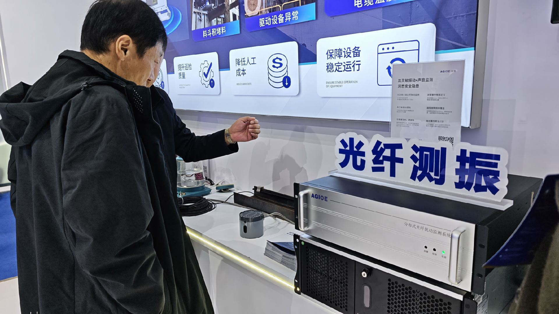 光格科技重點(diǎn)展示的“膠帶機無(wú)人巡檢方案”由分布式光纖振動(dòng)監測與溫度監測兩大子系統構成,創(chuàng )新性地采用光纖傳感技術(shù),為膠帶機構建一張 “智能感知神經(jīng)網(wǎng)絡(luò )”,對設備運行狀態(tài)進(jìn)行連續感知與精準診斷。